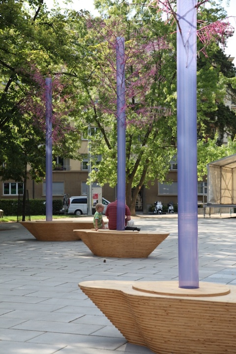 Projet de mobilier urbain pour la Fête de la Jeunesse et les 1000 ans de la Ville de Neuchâtel, du 1 juillet au 1 septembre 2011.