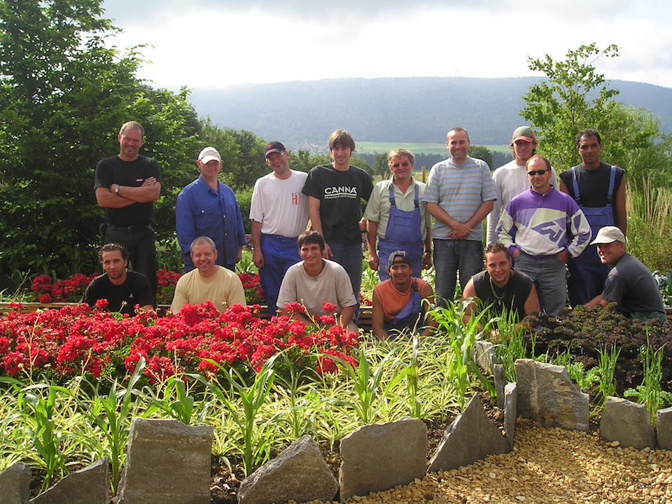 Patrick Percier et l'atelier d'Architecture Bruno Marmiroli et Patrick Gentil, plante établissement de la ville de Neuchâtel Luc Vincent. Aux Institutions, Arc et Senans, Ville de Neuchâtel, Ville de La Chaux-de-Fonds, Jardin botanique, Commune de Cernier Aux entreprises, Pitussi jardin, Chalandes Horticulteurs, Fivaz Matériaux, Aiassa, Atelier vert. Et aux collaborateurs et amis Claude Lienher, menuisier, Patrick Zbinden, Serrurier, Patrick Percier, Responsable des jardins d'Arc et Senans, André Crivelli, graphiste pour l'heure et tout le personnel d'encadrement et la direction d'Evologia Loterie Romande Sponsor, Landi Matériaux Horticole, J.P. Challandes Horticulteur, Fivaz Matériaux, Alfred Forster Pépinière, Hortima Matériaux Horticole, Jallut Peinture, Meier Pépinières, F. Perroud Electricité, Laurent Pitussi Paysagiste.